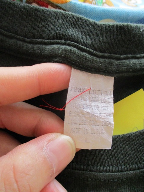 シブい緑色ボディに青×黄とモノクロカラーのプリントが絶妙な配色です
