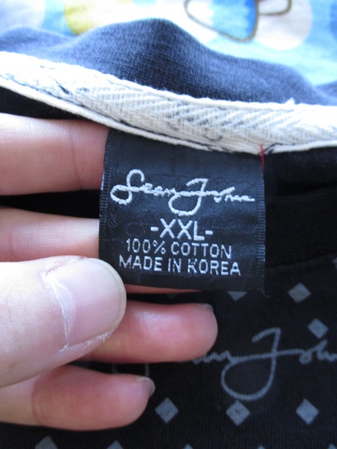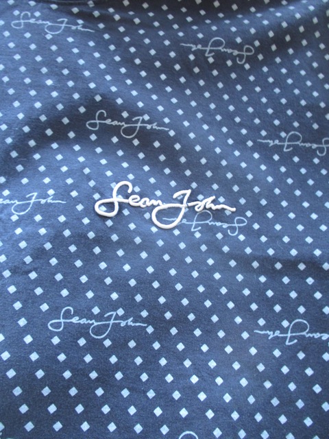 黒ボディにグレーでプリントされたショーン・ジョンのロゴと菱形の総柄