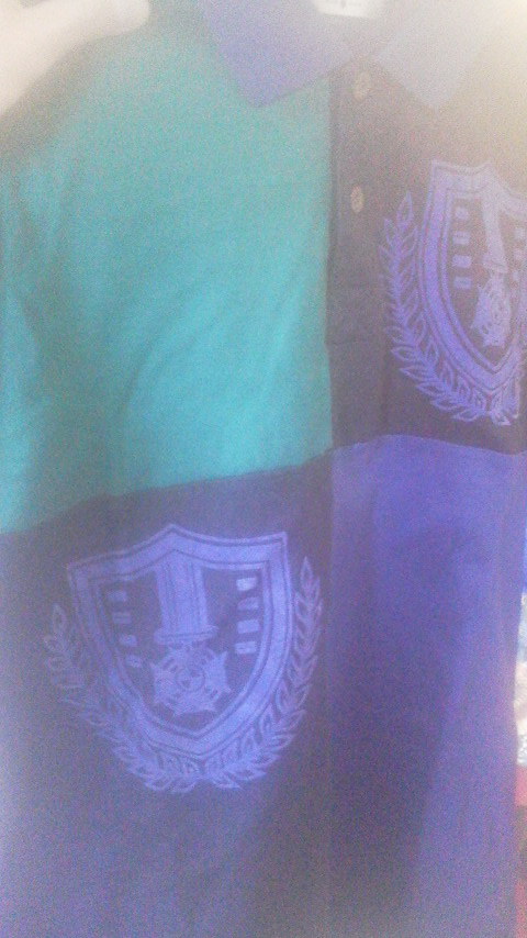 青×紺×緑の配色がユニークな切替ポロ