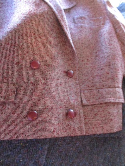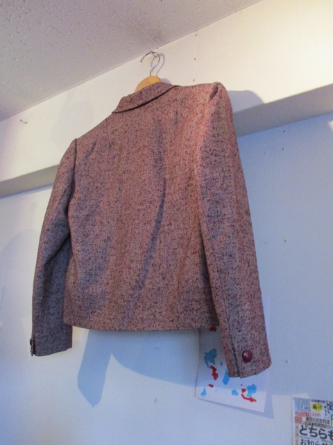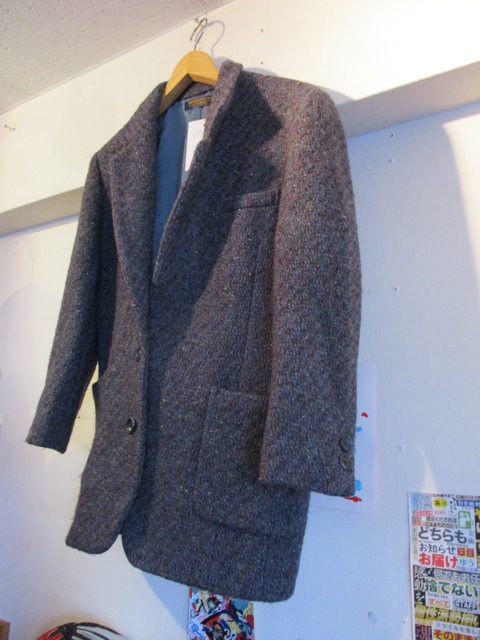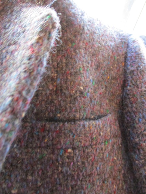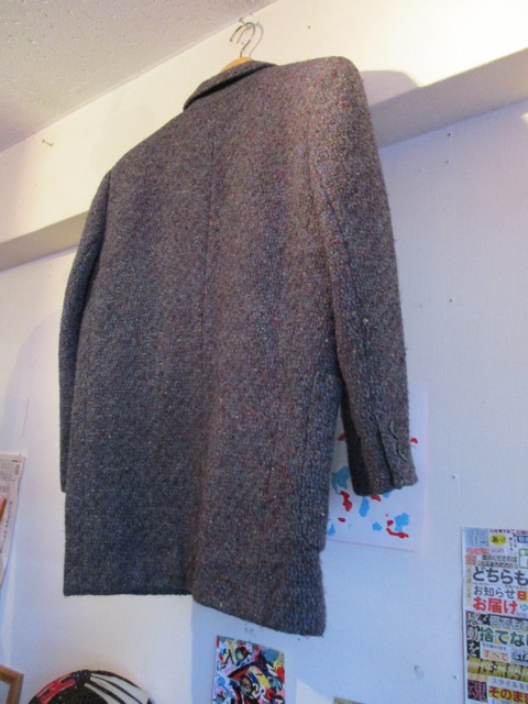 青色ベースにカラフルなチップ入りのウールが感じの良い一着