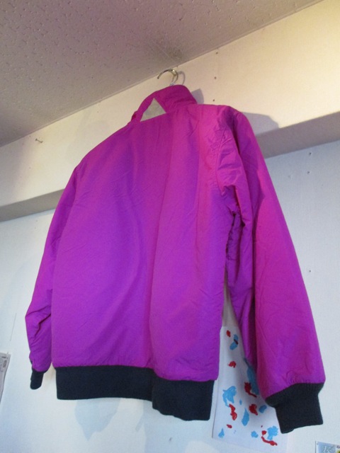 目をひく黄色に紫色の文字パッチ(前面)とプリント(背面)が良い感じ