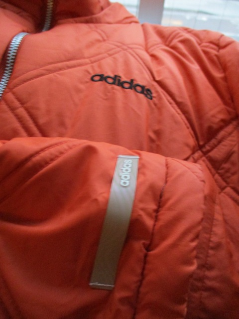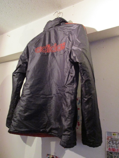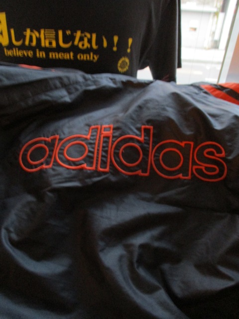 もう片側は鮮やかなオレンジ地に「adidas」のワンポイント文字刺繍