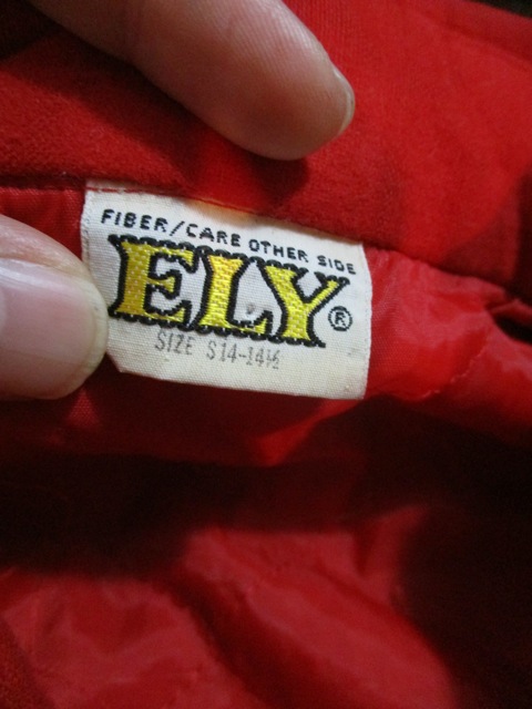 右胸に赤で入った文字ロゴ刺繍と左肩に付いたマンモス刺繍ワッペンが良い感じ