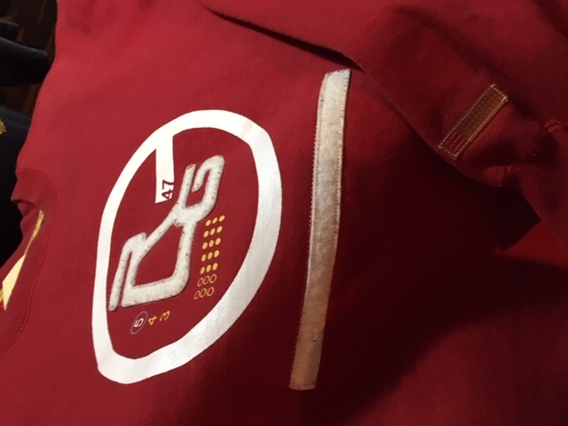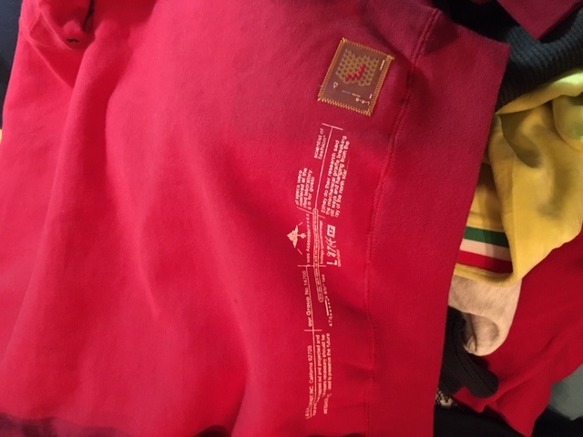 コチラはネイビーボディに赤と黄で入ったロゴ刺繍がイカした一枚