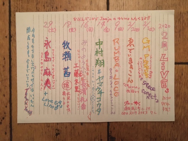 ワニとサイの2月のライブスケジュールもお預かりしてます