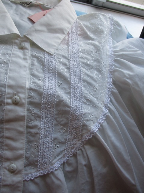 肩から胸元にかけて施された花柄刺繍デザインが素敵な白ブラウス