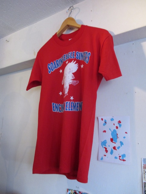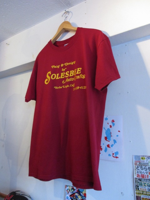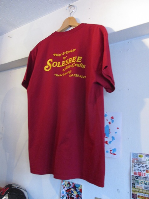 臙脂色ボディに黄色の文字ロゴプリントがエエ感じの一枚
