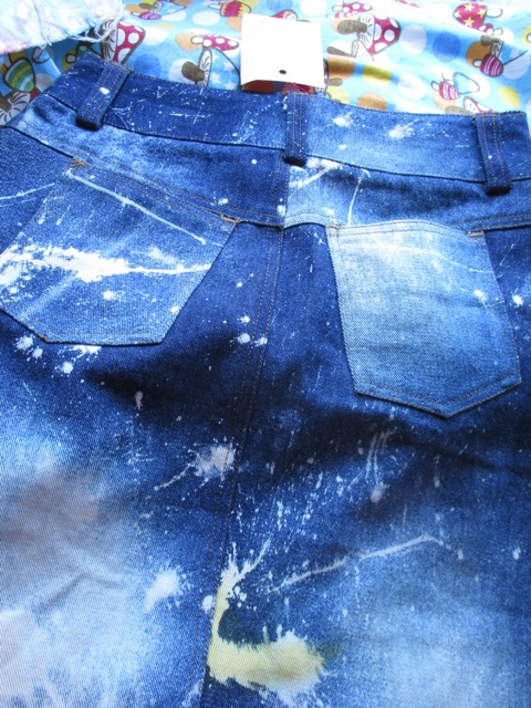 色落ち加工したデニムの上からアクションペインティング調のペンキ柄