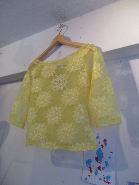 黄×白カラーで、前面と袖に素敵な花の刺繍が施された一枚