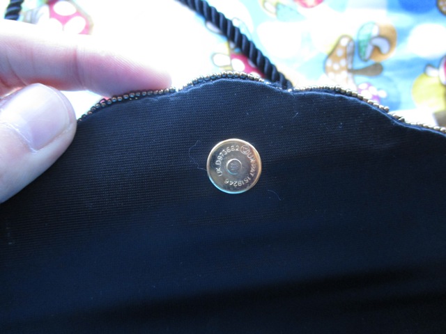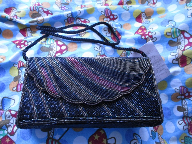 黒地に金とピンクのラインが素敵なビーズバッグ
