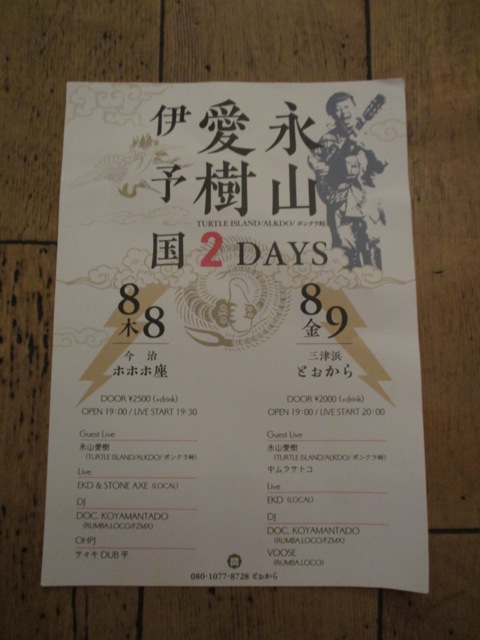 今治はEKD & STONE AXE、三津は中ムラサトコさんやEKDのLIVEなどもあり