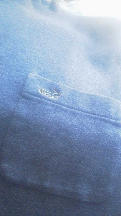 左胸にポケット付きで、その上にワニのワンポイントロゴ刺繍入り